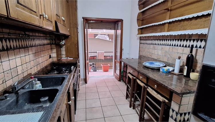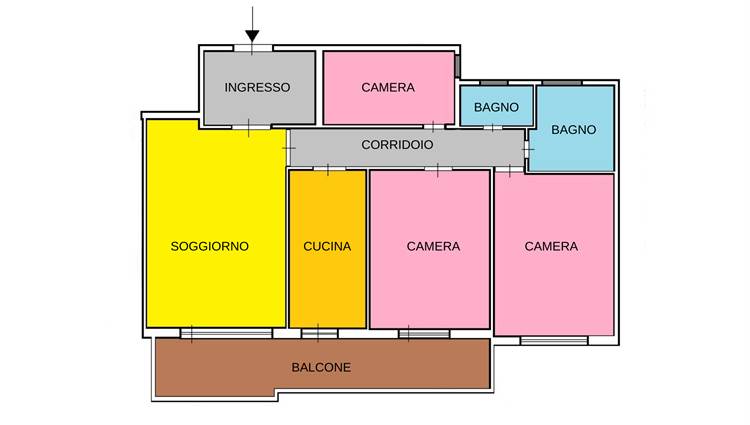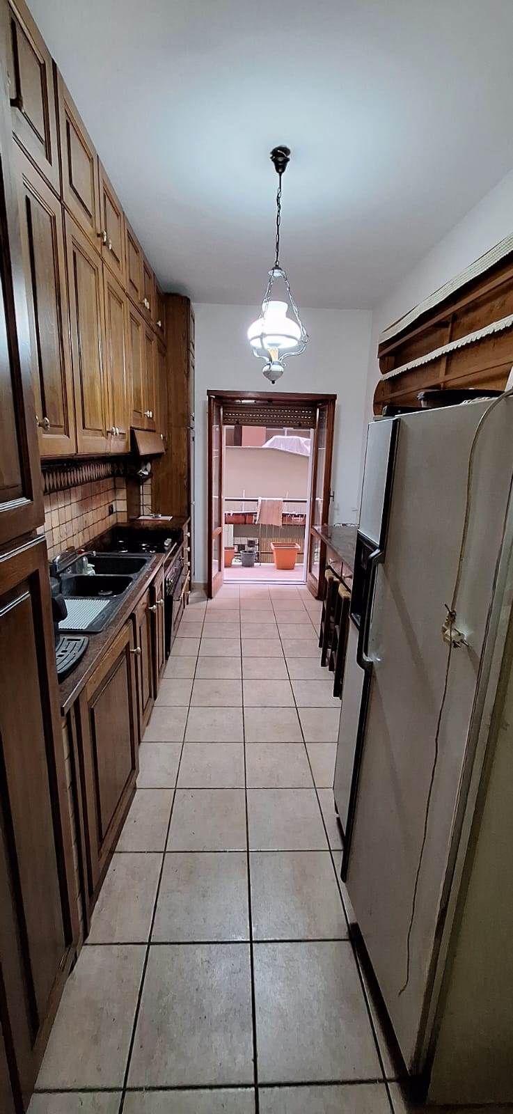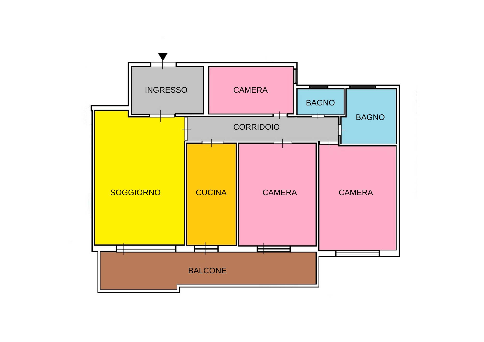 L'appartamento è composto da ingresso, corridoio, soggiorno, due camere matrimoniali, una cameretta, cucina abitabile, doppi servizi ed un balcone.