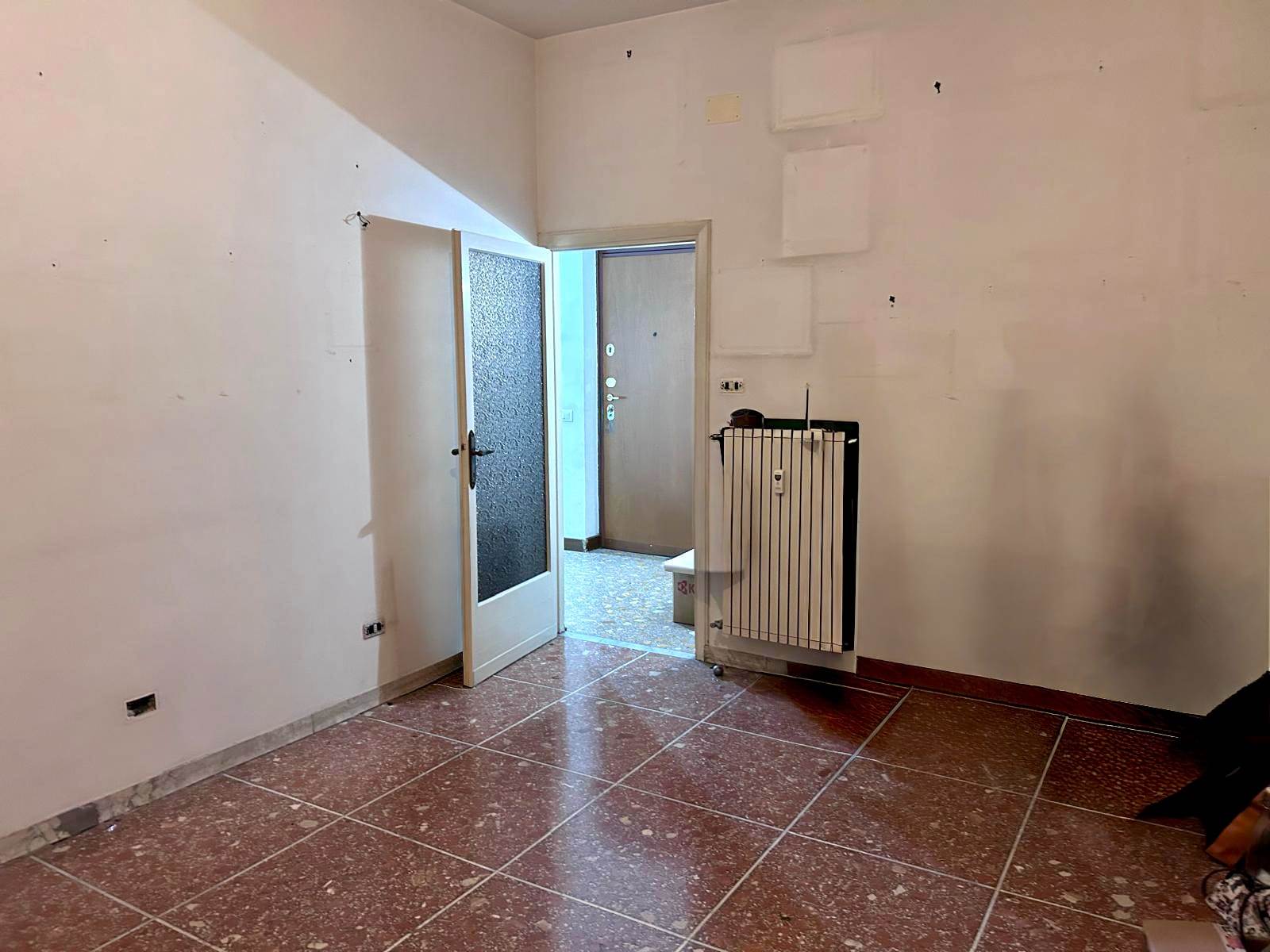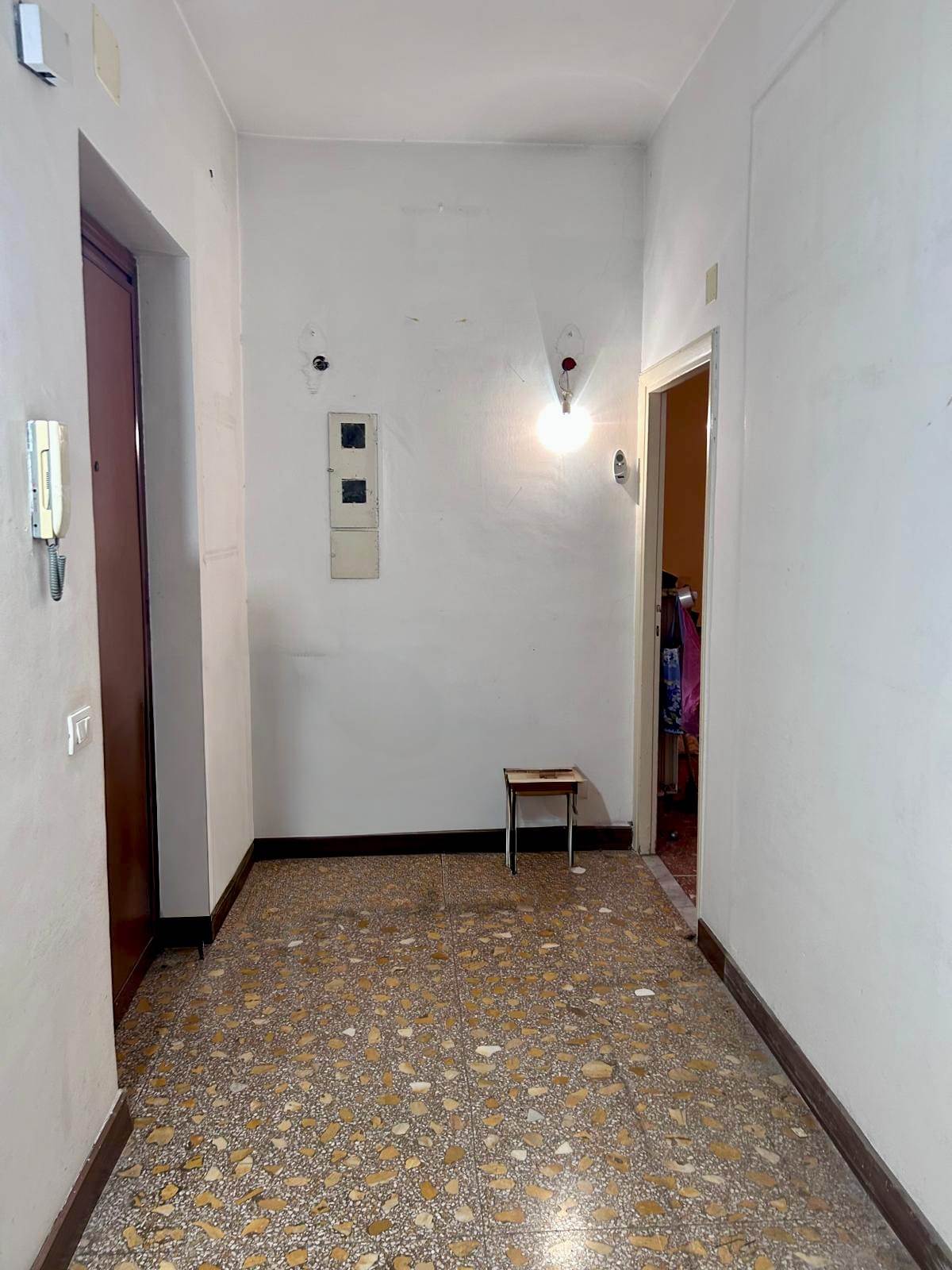 L'appartamento è composto da ingresso, corridoio, un soggiorno, due camere, cucina abitabile, un bagno, un comodo ripostiglio e due balconi