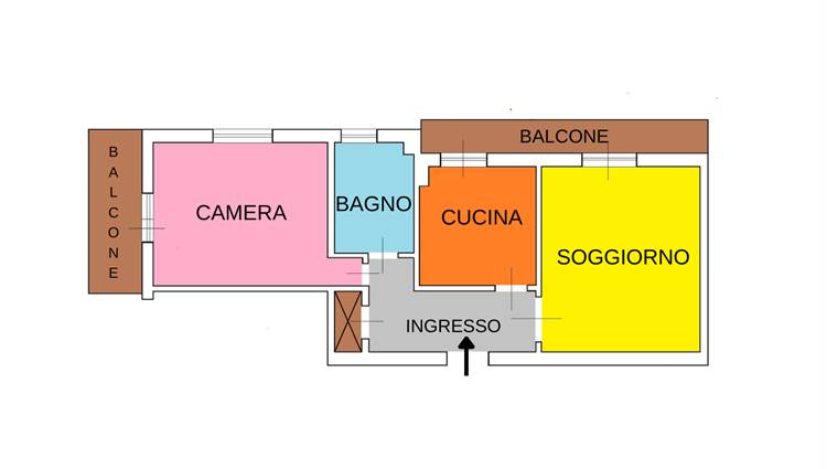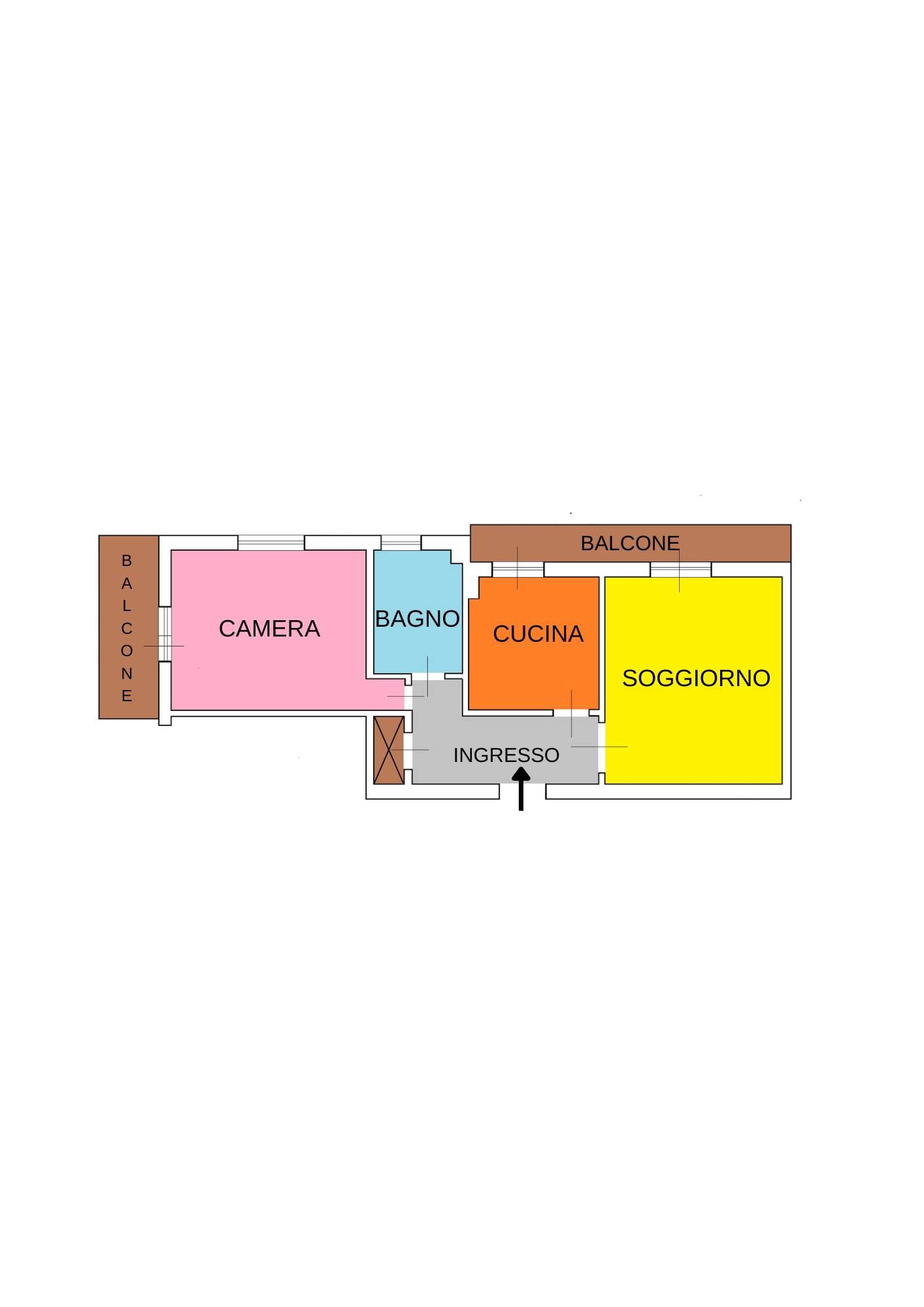 L'immobile è così composto: ingresso, soggiorno, camera matrimoniale, cucina abitabile, un pratico ripostiglio, bagno con finestra e due balconi.