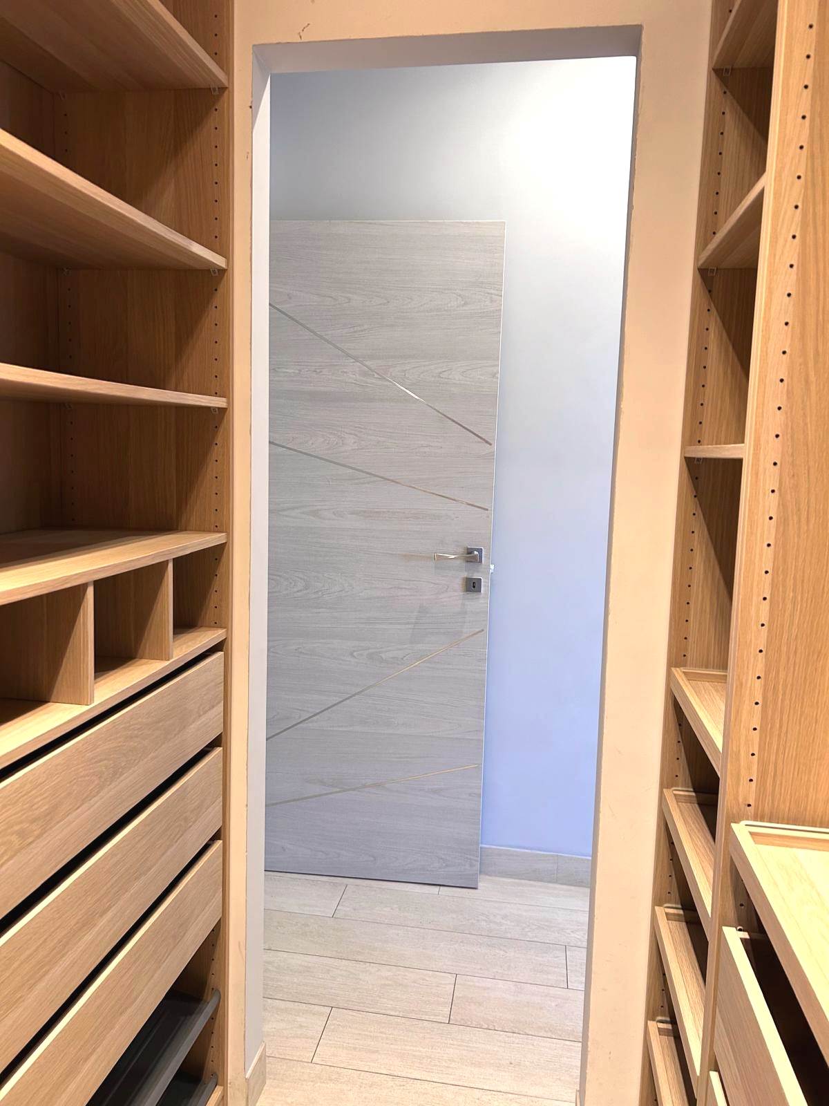 Gli impianti elettrico e idrico sono a norma. Le prese elettriche, presenti in ogni ambiente – inclusi balcone e ripostiglio – sono dotate di attacco Schuko, ideale per apparecchi ad alta potenza e per garantire un livello superiore di sicurezza. L’illuminazione è affidata a faretti LED, che conferiscono agli ambienti un aspetto moderno e raffinato. In particolare, in camera da letto è installato un sistema di illuminazione a LED con regolazione dell’intensità e variazione cromatica.