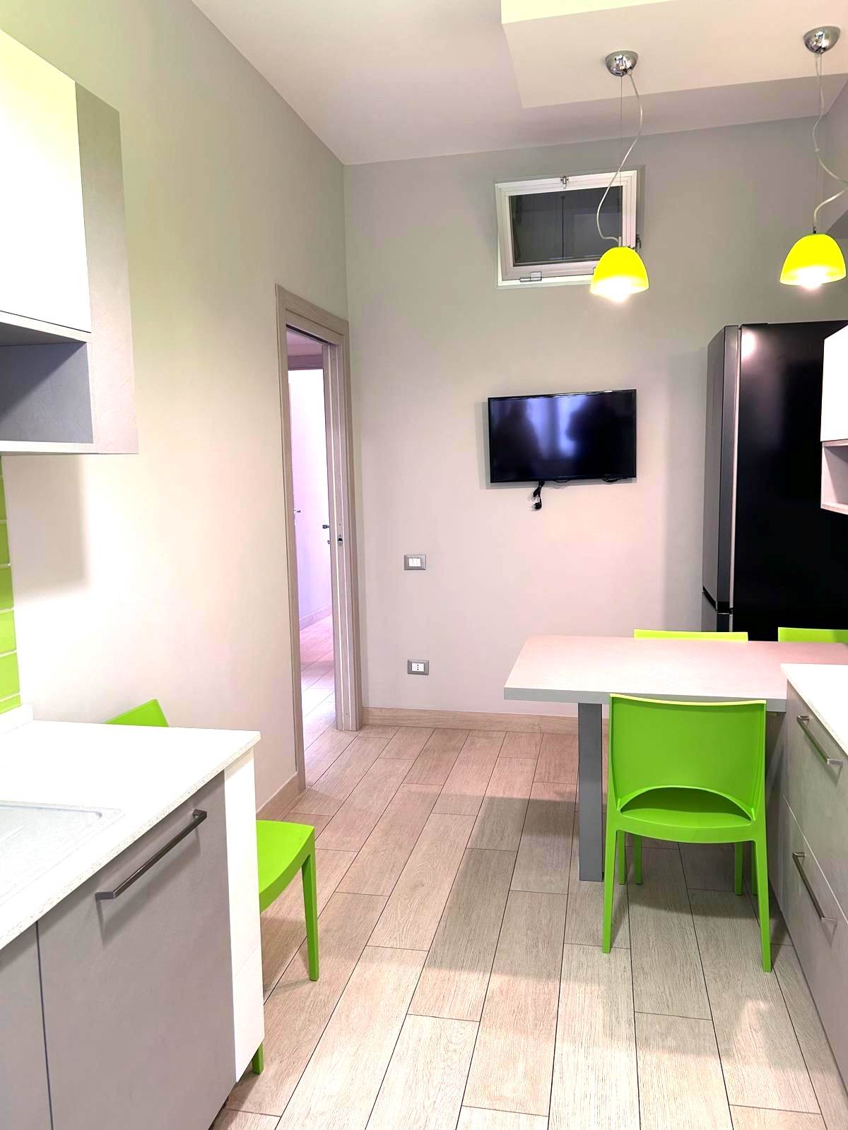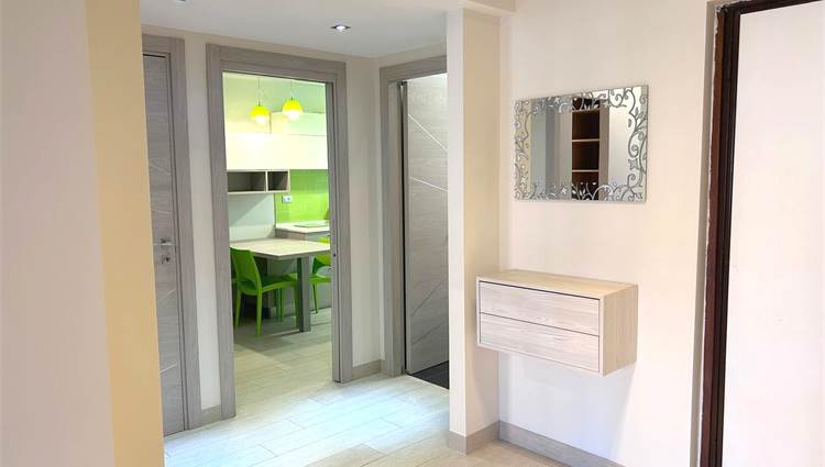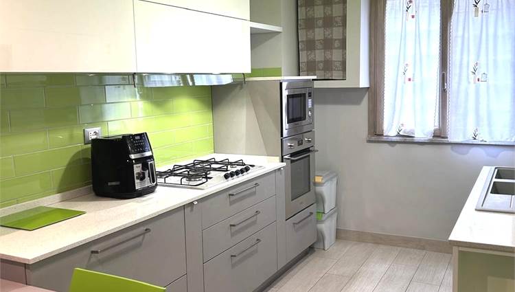 L’appartamento viene venduto completo di arredi ed elettrodomestici. In particolare: armadio a muro all’ingresso; parete attrezzata, tavolo con quattro sedie, due divani, di cui uno letto e comò nel soggiorno; cucina “Arredo Tre” completa di frigorifero, forno elettrico, microonde, lavastoviglie, friggitrice e tavolo con quattro sedie; camera matrimoniale arredata con letto, comodini e comò, in bagno è presente una lavatrice marca "Hoover". Inclusi nella vendita anche due Smart TV Samsung.