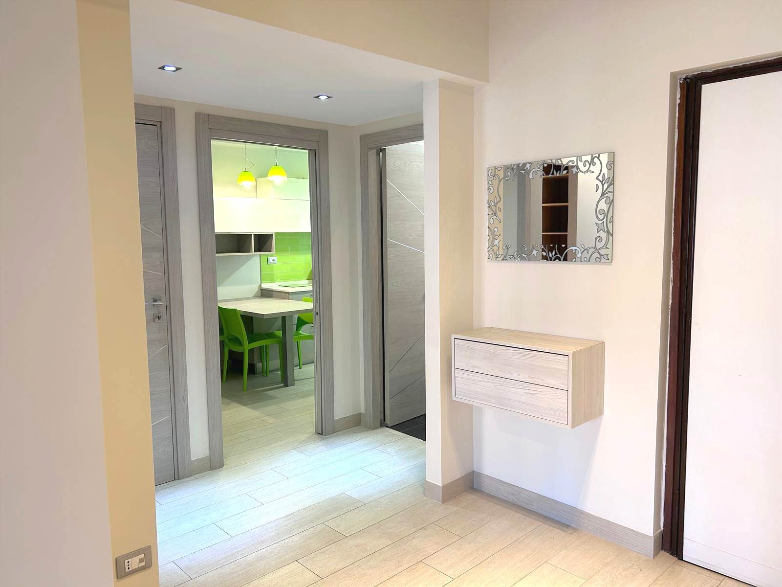 Le finiture interne sono di alto livello: porte nuove, infissi in PVC della Oknoplast, con doppio vetro e apertura basculante, zanzariere plissettate e grate di sicurezza. In cucina e in bagno sono inoltre presenti serrande elettriche in PVC. La pavimentazione è in gres porcellanato in tutti gli ambienti.