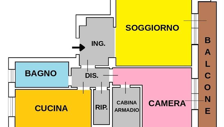 L’appartamento, in eccellenti condizioni grazie a una recente ristrutturazione, è composto da ingresso, disimpegno, soggiorno, camera matrimoniale con ampia e funzionale cabina armadio, cucina abitabile, bagno con box doccia, ripostiglio, soppalco praticabile con doppio accesso e ampio balcone recentemente riverniciato.