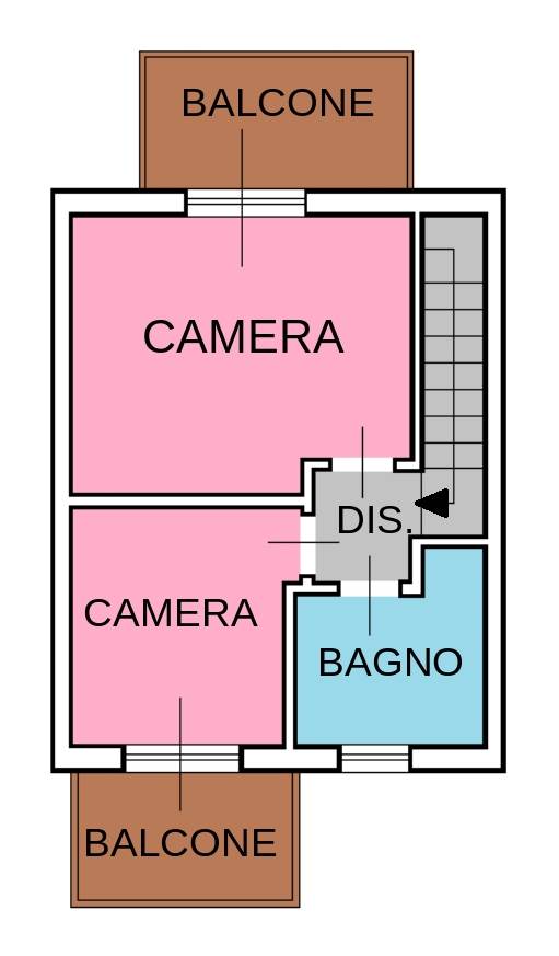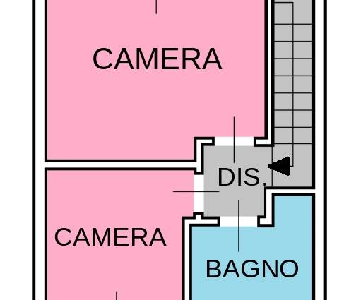 Collegato da scala interna, il piano superiore ospita una camera matrimoniale e una cameretta, entrambe con balcone, oltre a un secondo bagno finestrato.