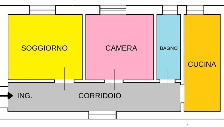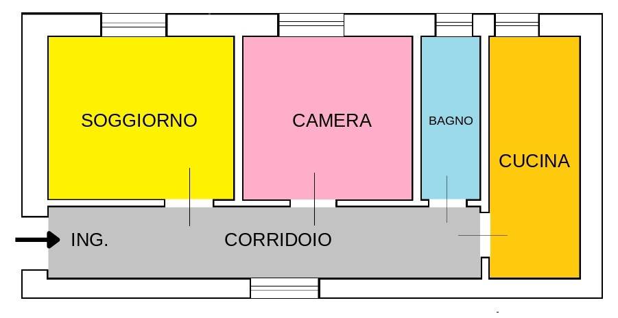 L'appartamento, posto al piano rialzato di una palazzina recentemente ristrutturata e dotata di cappotto termico, è composto da ingresso, corridoio, soggiorno, camera, cucina abitabile e bagno. Il riscaldamento è autonomo e sono presenti due climatizzatori.